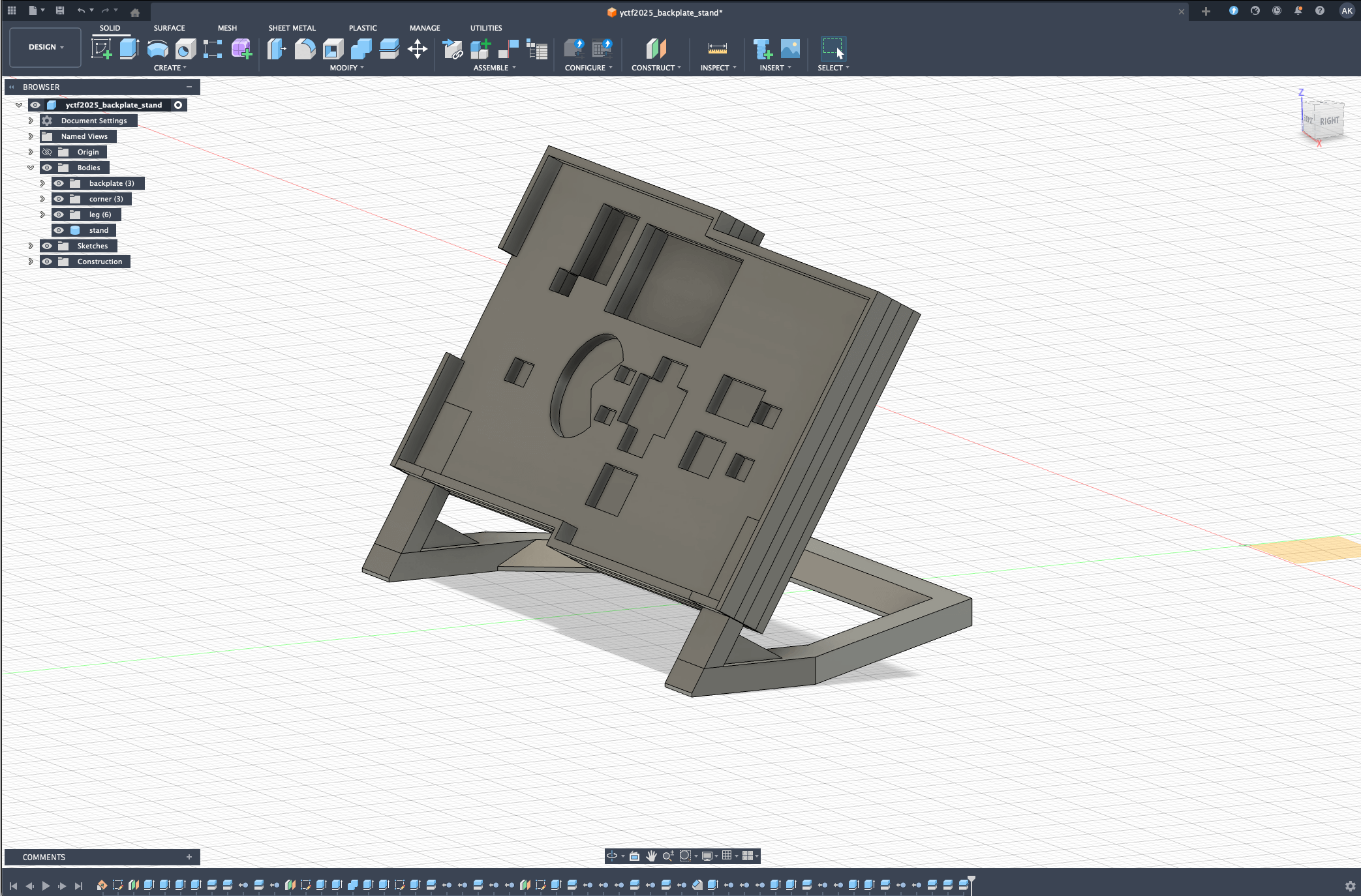 Смоделировать во Fusion 360 будущий бэкплейт с подставкой (для красоты и переотражений):